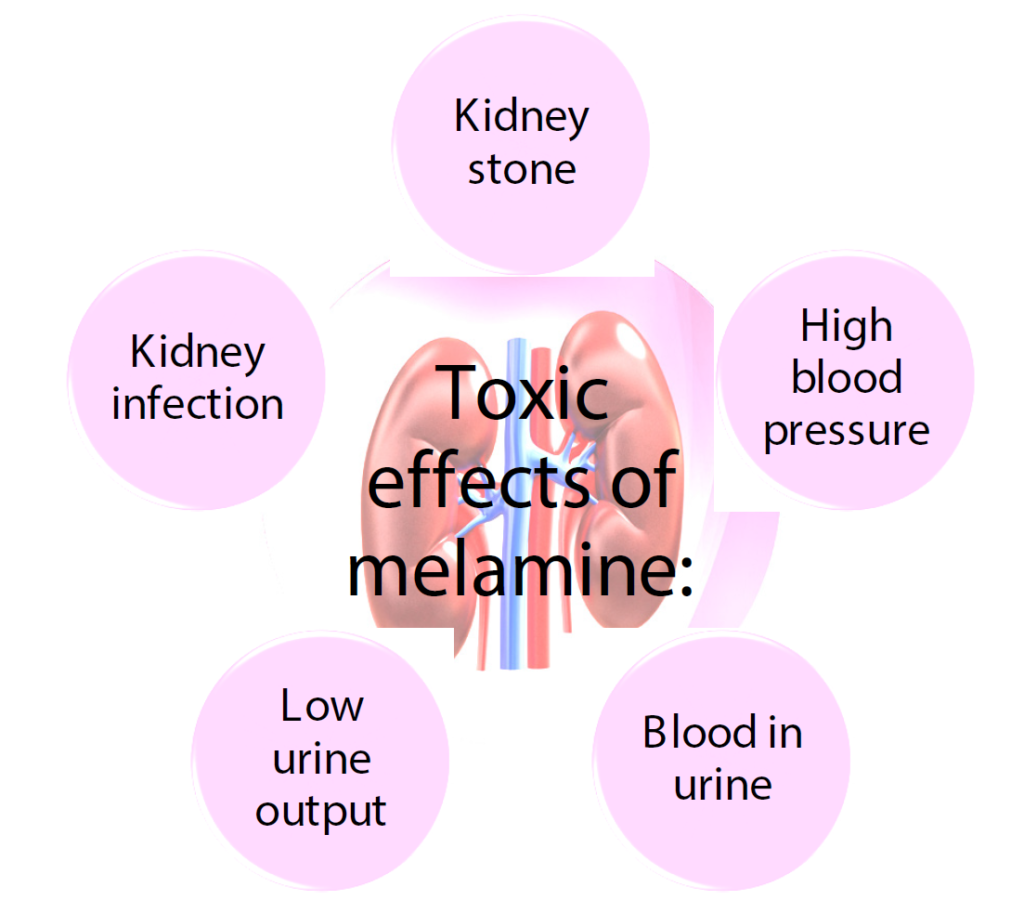 Melamine, a nitrogen-containing industrial compound, is widely used in numerous industries; however, its misuse as a protein adulterant in food and feed has led to significant public health crises. The low production cost of melamine makes it attractive for fraudulent adulteration of food and feed to artificially increase protein content, resulting in significant health risks to humans and animals when ingested. The kidneys are the most commonly reported site of melamine or melamine cyanuric acid toxicity.